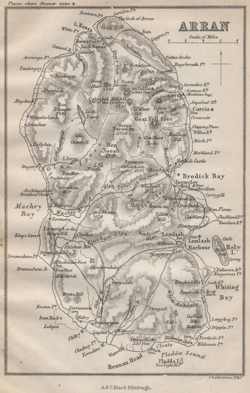 La plus grande ville, c’est Brodick, là où arrive de ferry, il y a toutes les commodités pour ensuite partir explorer les paysages époustouflants de Arran.